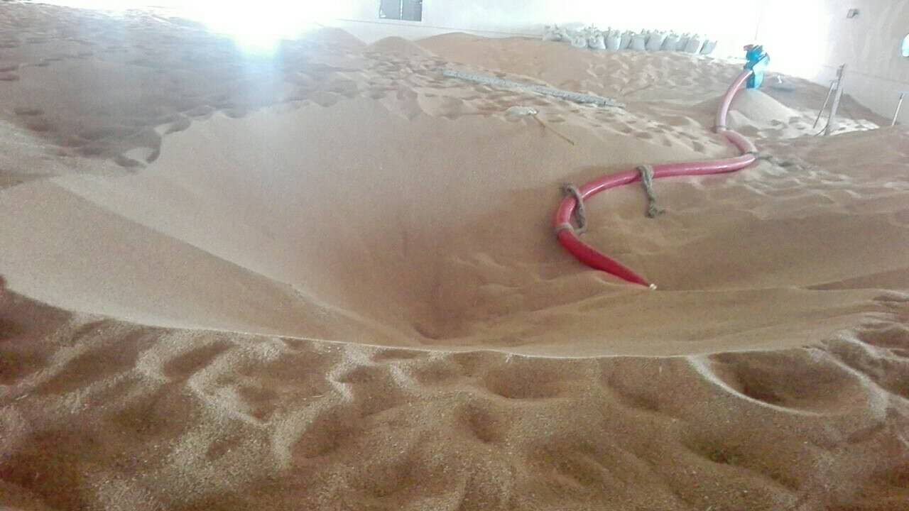 2017年7月10日,新鄉(xiāng)市雄風(fēng)機(jī)械的吸糧機(jī)成功運(yùn)用在新鄉(xiāng)市某國家大型糧庫,做平倉用,節(jié)省人力和時間,效果顯著。在糧管所所長的見證下,吸糧機(jī)運(yùn)行平穩(wěn),小麥輸送量達(dá)到預(yù)期效果,很快進(jìn)口處被抽成了一個大坑,糧食得到了轉(zhuǎn)移。現(xiàn)場的工人臉上也露出了笑容,畢竟機(jī)器還是省勁!